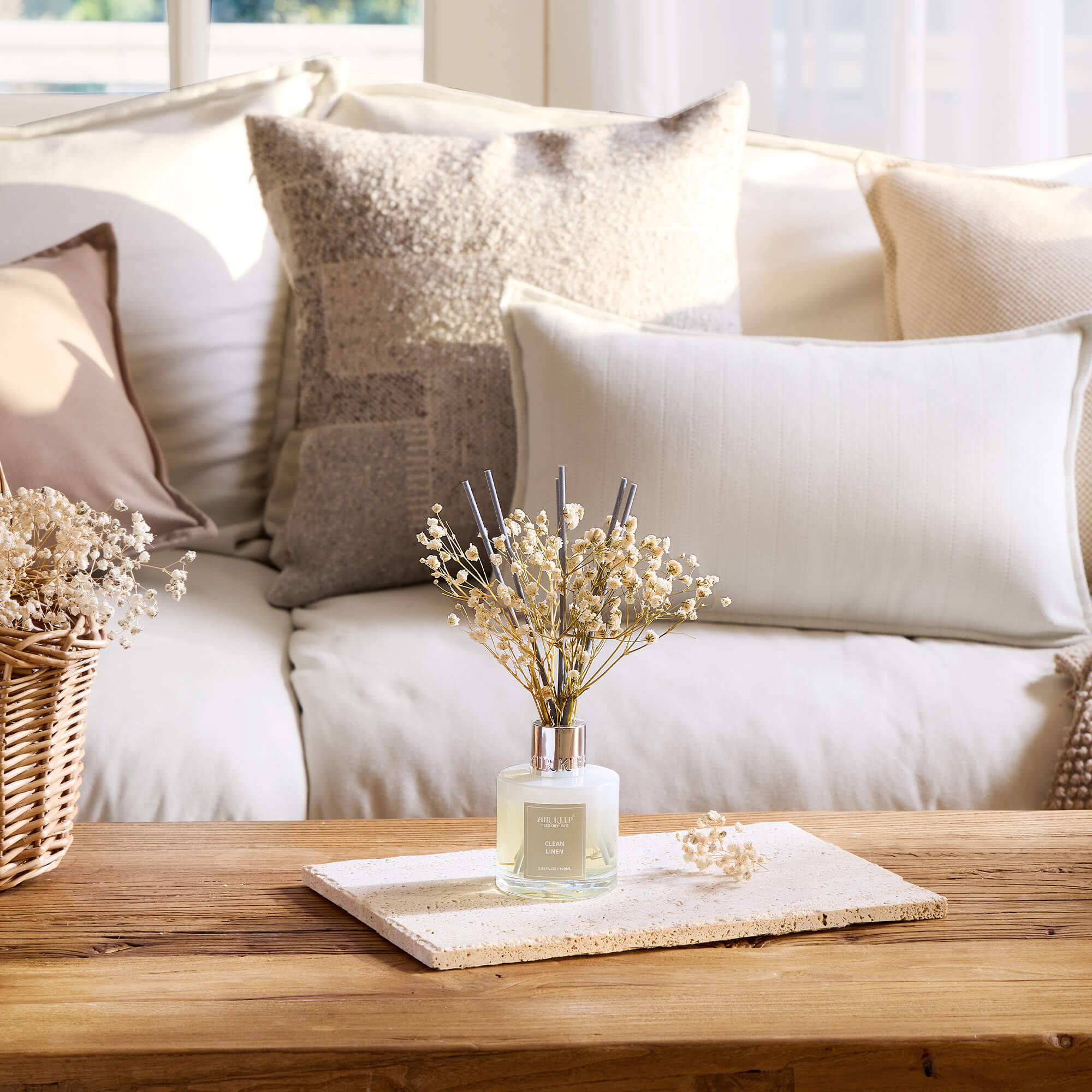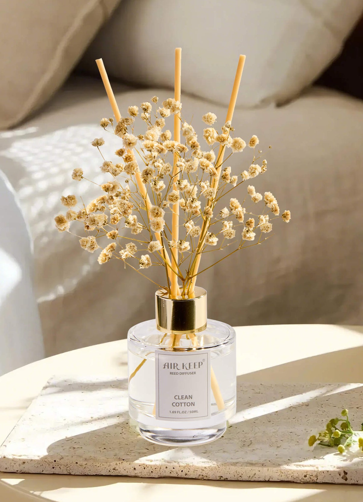 Nice subtle scent. I’ve used reed diffusers several times & one thing I’ve notice is if your room is warm the oil is used up faster than a cooler room. Very decorative & I like the gray reeds better than the brown ones.